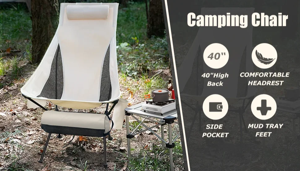 Portable Folding Camping Chair with Headrest Lightweight Tourist Chairs Aluminum Alloy Fishing Chair Outdoor Furniture