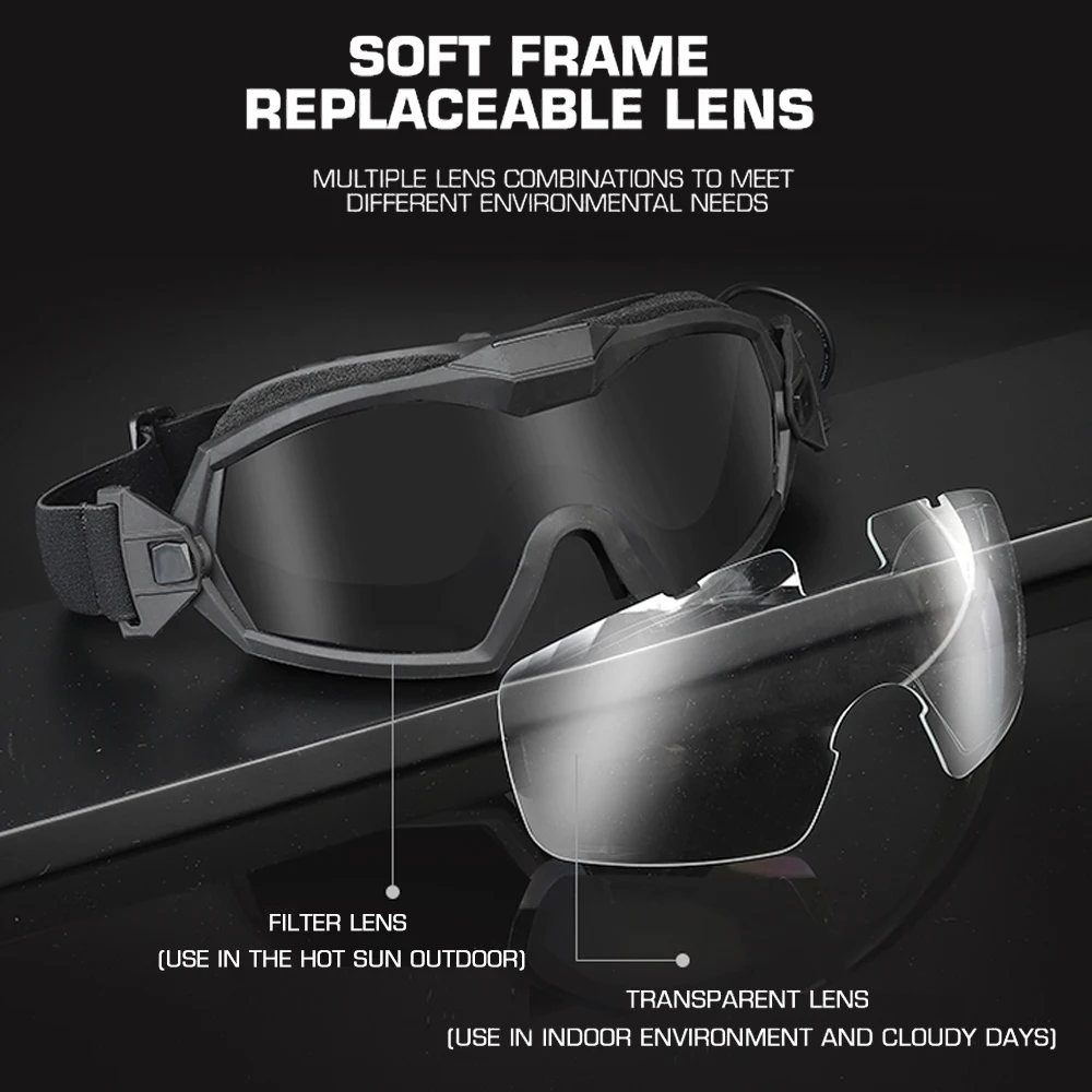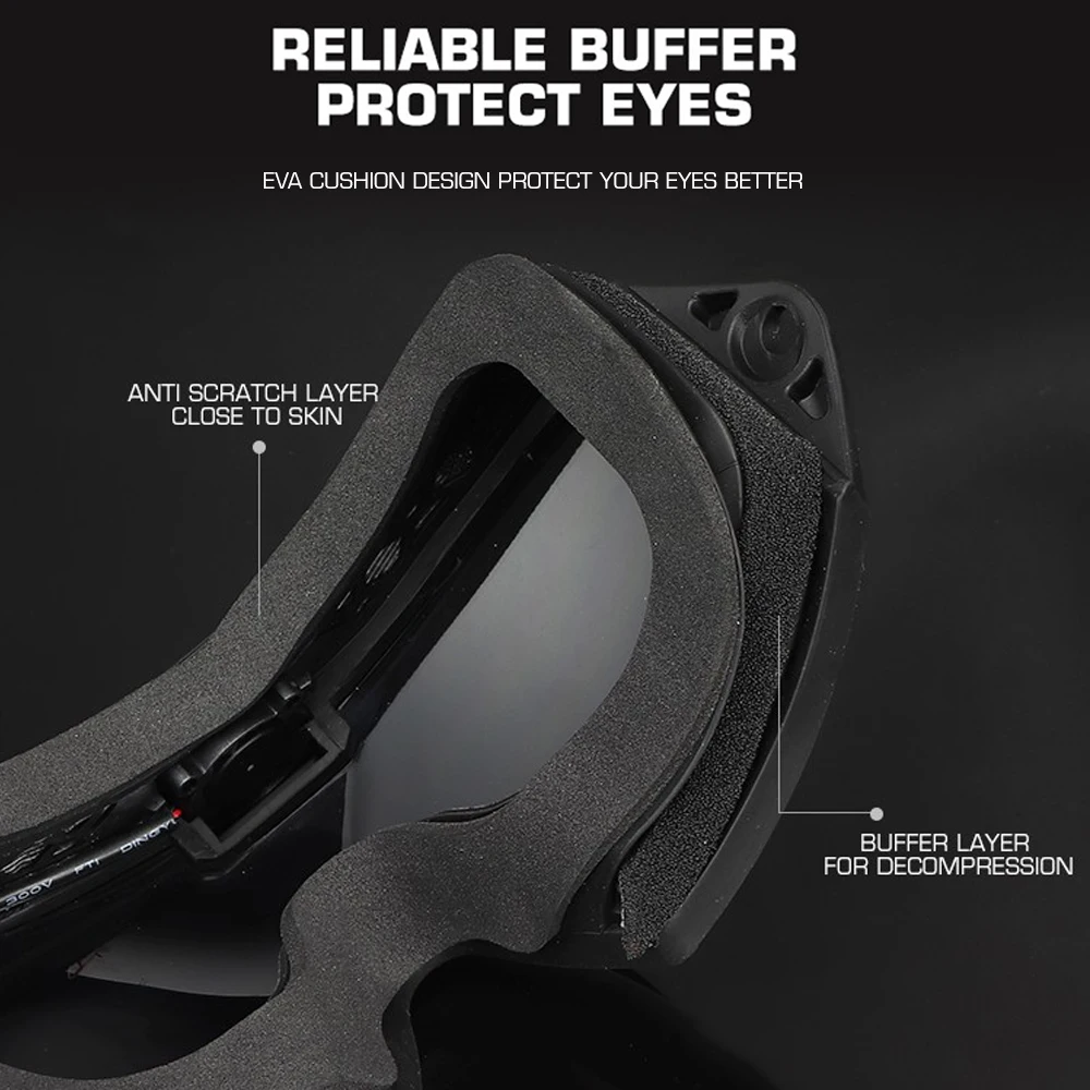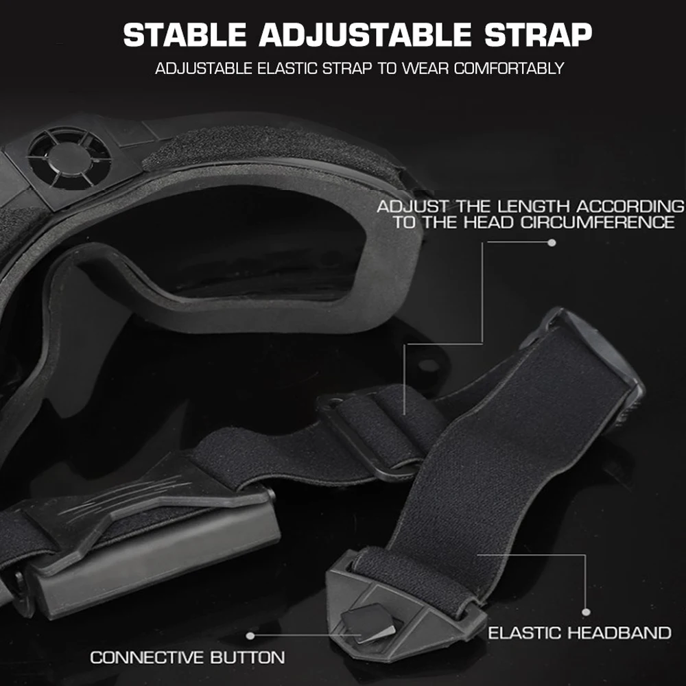 Tactical Anti-fog Goggles Ski Airsoft CS Protective Glasses Transparent Black 2 Lens Motocross Dustproof Goggles with Micro Fan