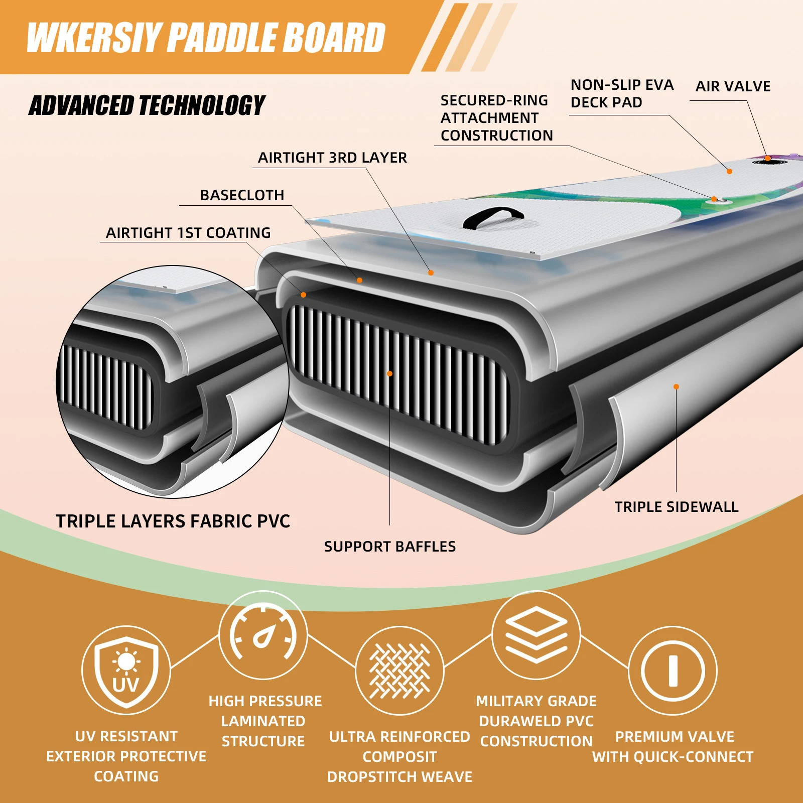 \nAnti-slip soft EVA top deck that cushions your fall and causes less accident and injures when slips or accidents occur.